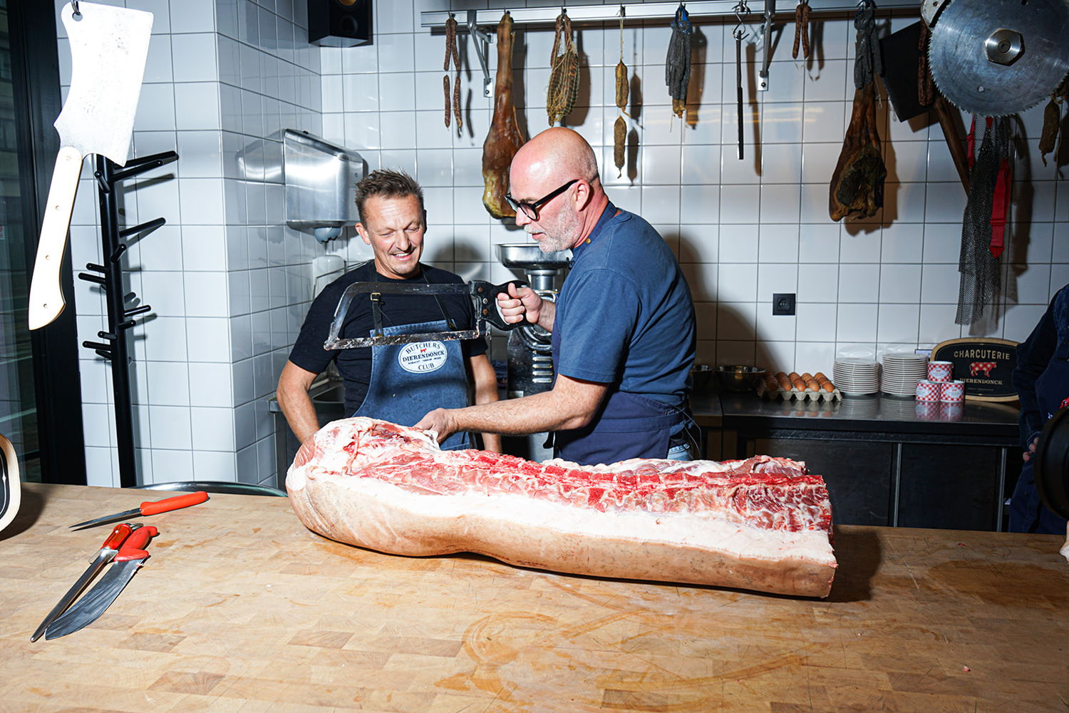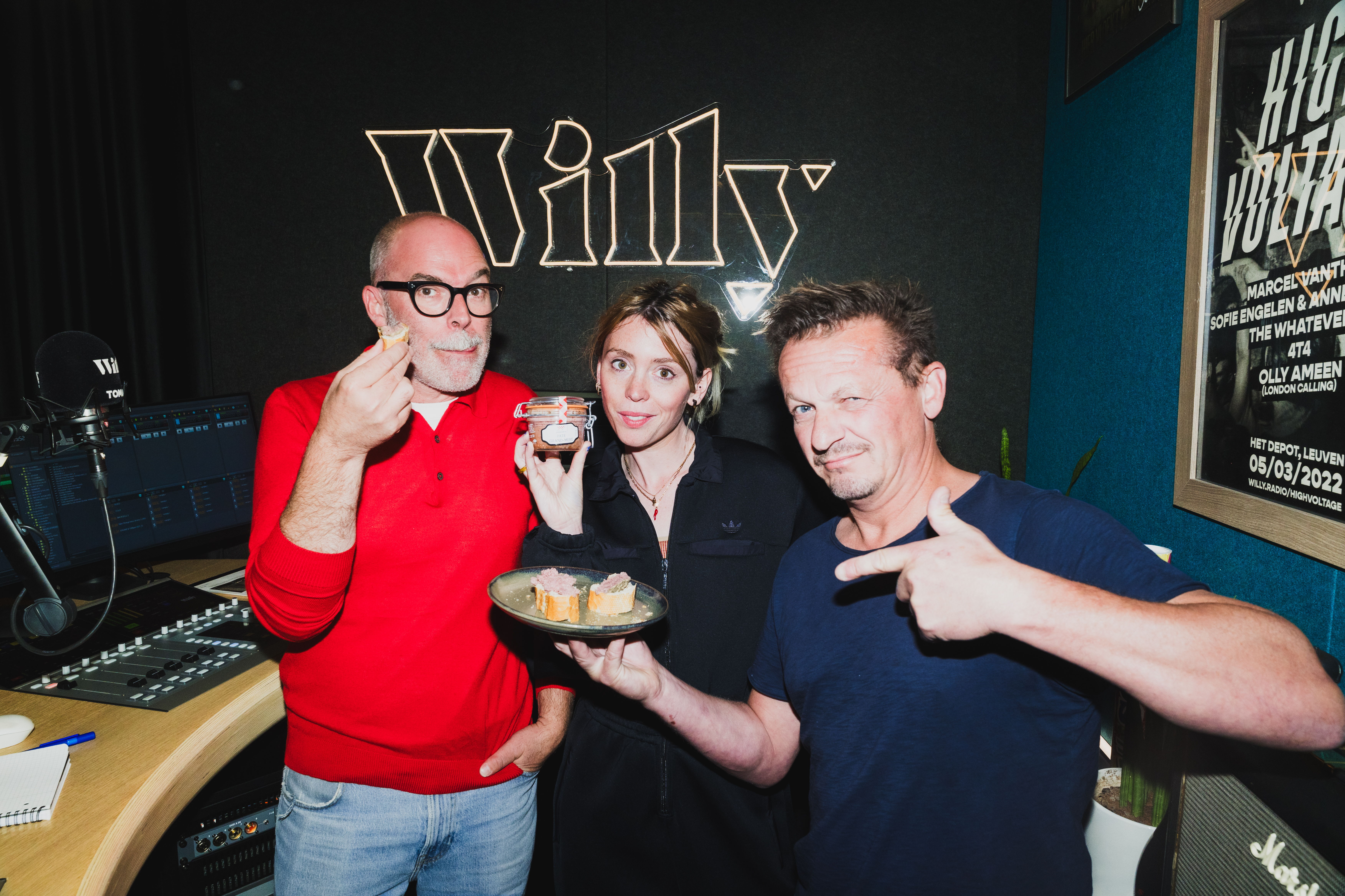 De match made in heaven begon allemaal met een verrassing van Sien. Die nodigde slager en ambachtsman Hendrik Dierendonck uit in de studio om haar paté-geobsedeerde collega te ontmoeten. “Ik dacht: als Tomas nóg één keer over paté begint, word ik zot. En ik hoopte op deze manier van zijn ‘gezaag’ af te zijn”, lacht Sien. Het bleek het begin van een onverwachte alliantie: Hendrik nodigde de dj’s uit voor een workshop in zijn atelier, waar ze met eigen handen leerden hoe je de perfecte paté maakt. En toen viel het grote nieuws: Tomas, Sien en Hendrik sloten een deal om samen een Willy paté op de markt te brengen.